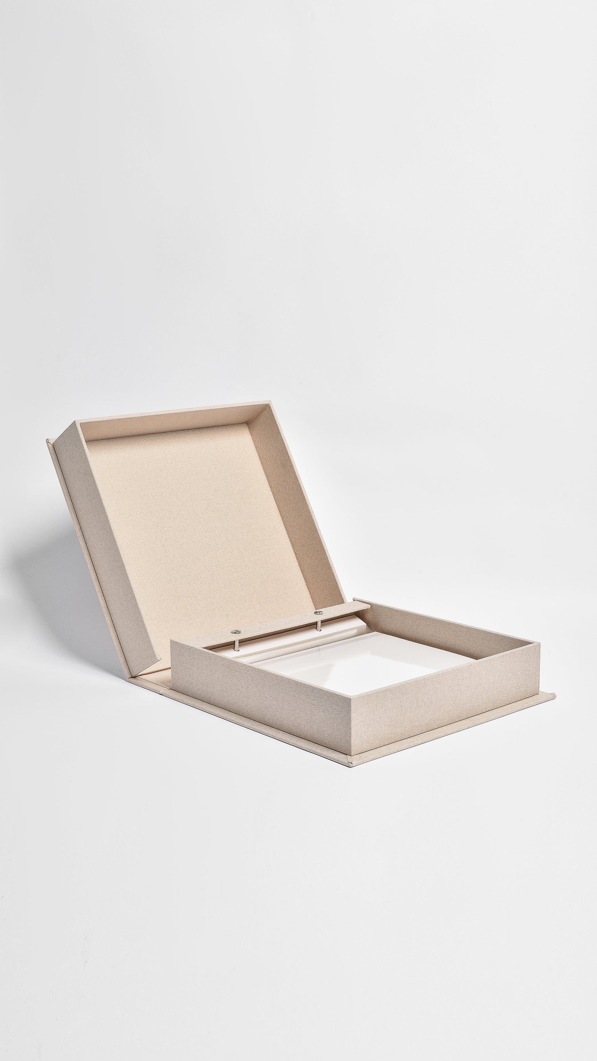 An heirloom designer album your little one will treasure for life. Bound in oat linen with foil-embossed title and spine details, The Baby Album is both functional and beautiful — made to display, made to last.