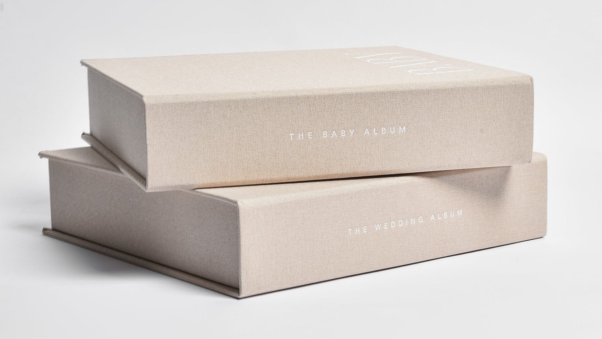 An heirloom collection made to hold life’s most meaningful chapters. The Wedding and Baby Albums are designed to sit beautifully side-by-side — both wrapped in oat linen, with white foil-embossed titles, ready to live proudly on display.