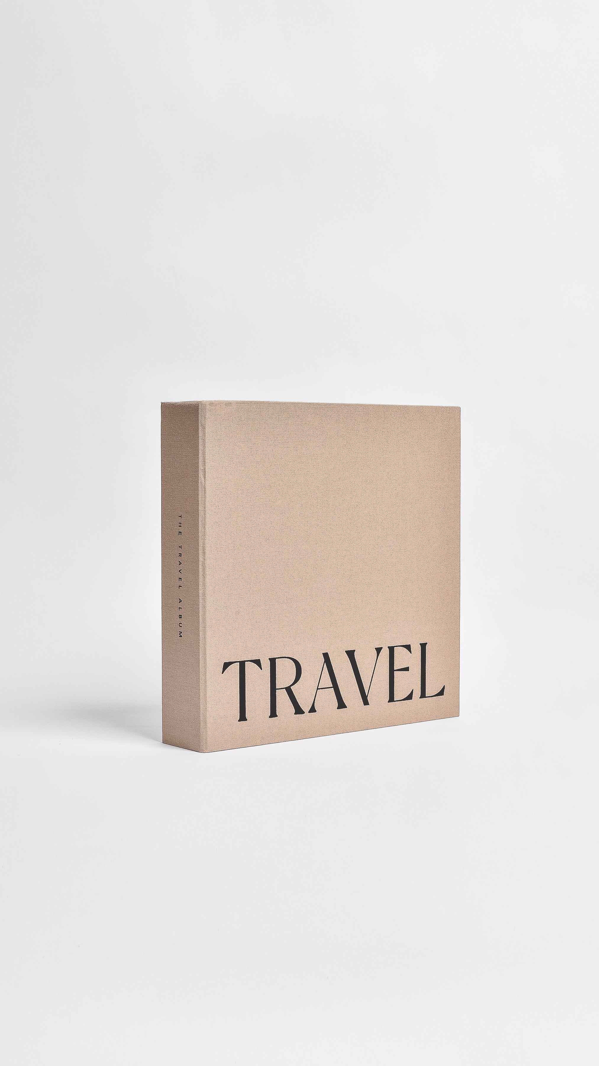 A designer album crafted to hold your most meaningful adventures. Bound in rich toffee linen with foil-embossed details, The Travel Album is made to be displayed, admired, and revisited for years to come.
