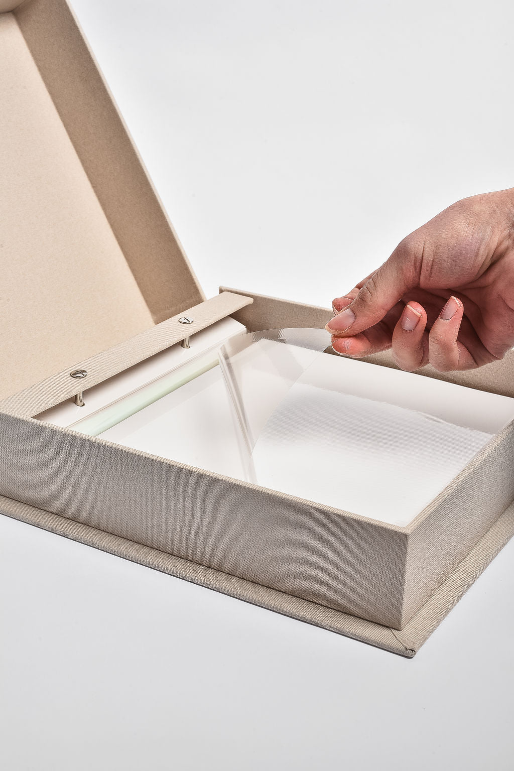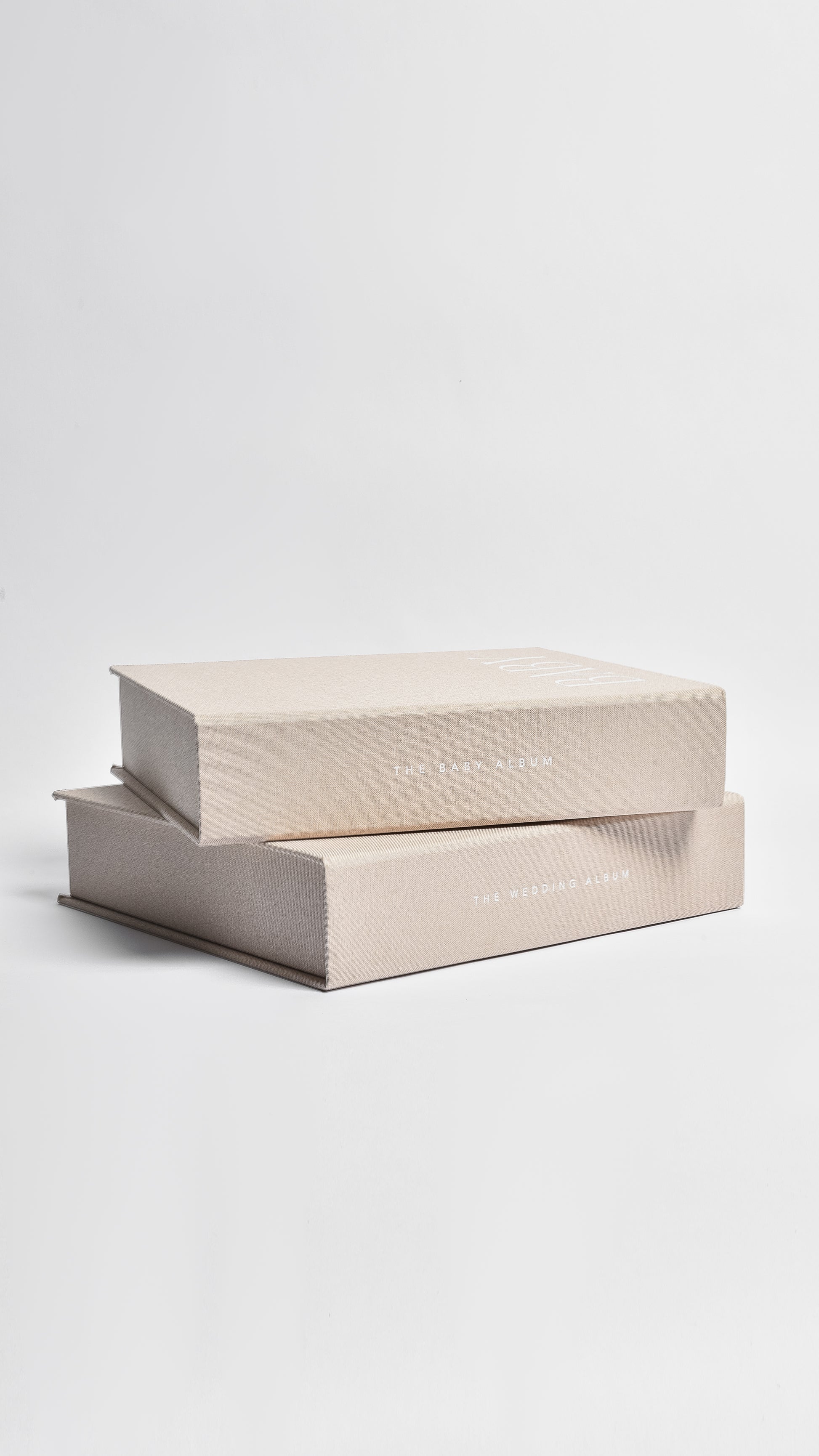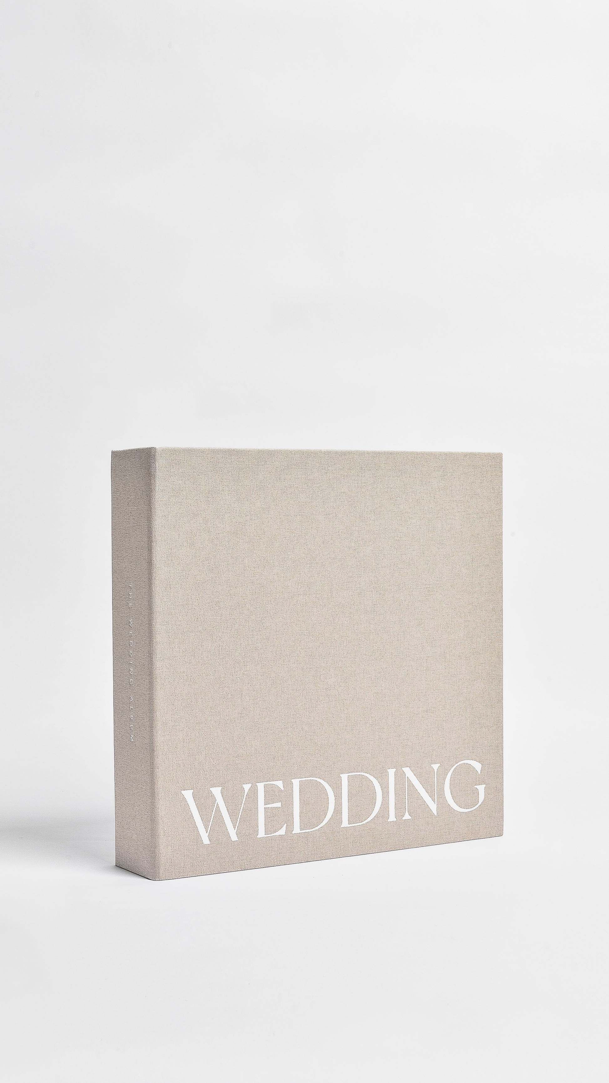 The Wedding Album features an oat linen hardcover with foil-embossed title and spine, creating an heirloom keepsake for your wedding day memories.